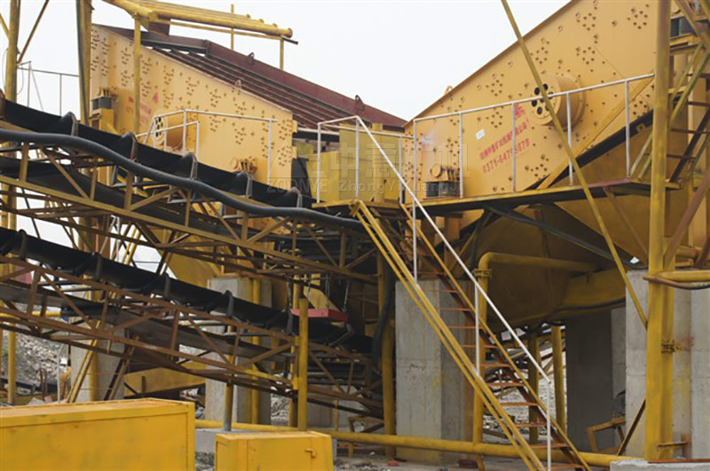 碎石生產(chǎn)線的流程較復(fù)雜.大致為:(料倉)->振動(dòng)給料機(jī)->顎式破碎機(jī)->反擊式破碎機(jī)->振動(dòng)篩->(成品石料)->沖擊式破碎機(jī)->振動(dòng)篩->洗砂機(jī)->(成品砂).其中,振動(dòng)篩可以共用,也可以分開來使用.各設(shè)備中間以溜槽或皮帶輸送機(jī)實(shí)現(xiàn)不同物理的傳送。