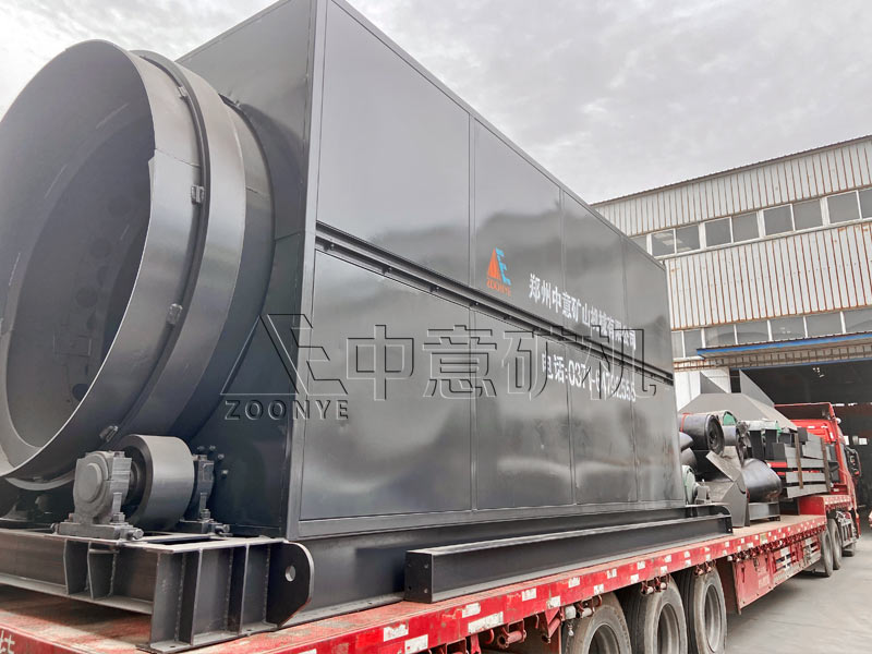 2、初級篩分:經破碎除鐵后的骨料被傳輸至滾筒篩設備處,加裝風機的滾筒篩可以干凈地將物料中的細小紙屑、塑料、木渣等分離出來,再生骨料能夠加工回收利用,輕質物能夠重塑加工。